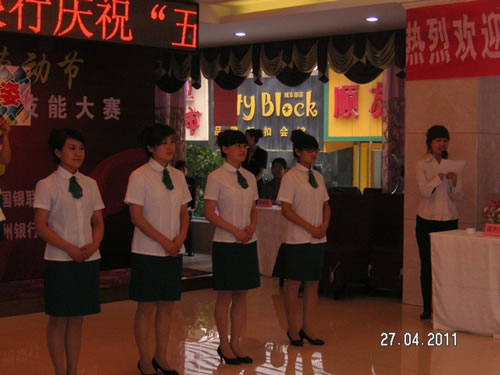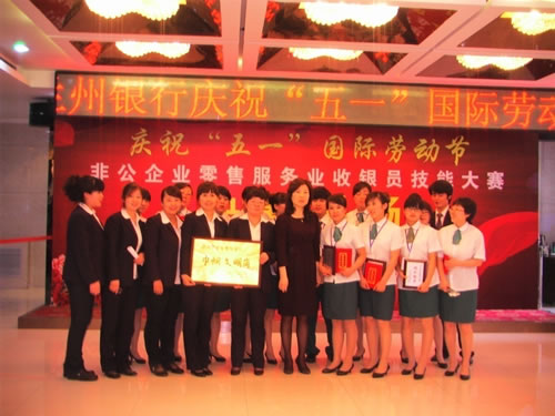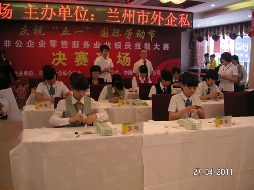 由兰州市总工会主办的“非公企业零售服务业收银员技能比赛” 于2011年4月27日下午,在人民饭店落下帷幕。参加比赛的选手都是来自各公司和企业的业务尖兵,现场压力重生,但是能和高手同台竞技是挑战,也是幸运,大家都为荣誉而奋斗。比赛经过单指单张、多指多张、机器点钞、银行卡刷卡、即问即答、工装展示环节近四个小时的比拼。最终国芳百货收银部取得了骄人的成绩,团队授予“巾帼文明岗”,参赛的12名选手在单项成绩中,两人荣获得一等奖、四人荣获二等奖、四人荣获三等奖、两人荣获优秀奖。