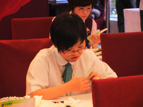 国芳集团参赛选手认真、快速的清点手中的钞票,展现出了扎实的基本功