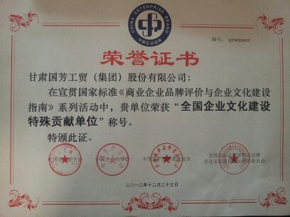 国芳集团荣获“2012全国企业文化建设特殊贡献单位”殊荣