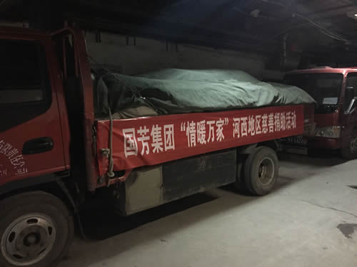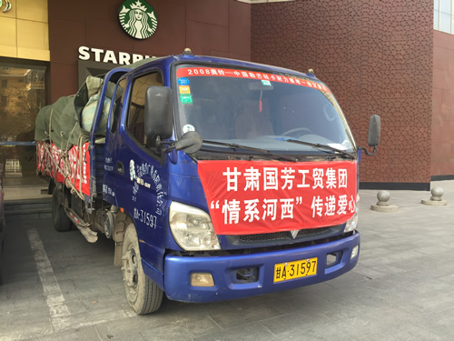 2016年12月12日,甘肃省慈善总会、武威市民政局携甘肃国芳工贸(集团)股份有限公司共同举行“情暖万家”送温暖活动,将100万元资金以及价值100万元的过冬棉服带给天祝县岔口驿敬老院的老人们。当日下午,甘肃省慈善总会与甘肃国芳工贸(集团)股份有限公司的各位爱心人士又马不停蹄的赶赴张掖为当地的孤寡老人带去了160万元资金以及价值250余万元的过冬衣物及被褥。此次活动传导社会帮扶、精准扶贫精神的同时也默默为社会传导着一份正能量。