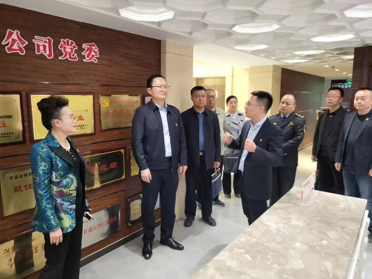 2024年4月26日,甘肃省市场监督管理局小微企业个体工商户专业市场党建工作处侯巍处长与省、市、区、街道四级市场监管局非公有制经济党建处室相关负责人一行莅临国芳集团党委进行调研指导并座谈交流。